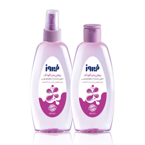 روغن بدن کودک فیروز ویژگی‌ها: روغنی ملایم و سبک برای مراقبت از پوست حساس کودکان، جذب سریع و حفظ نرمی