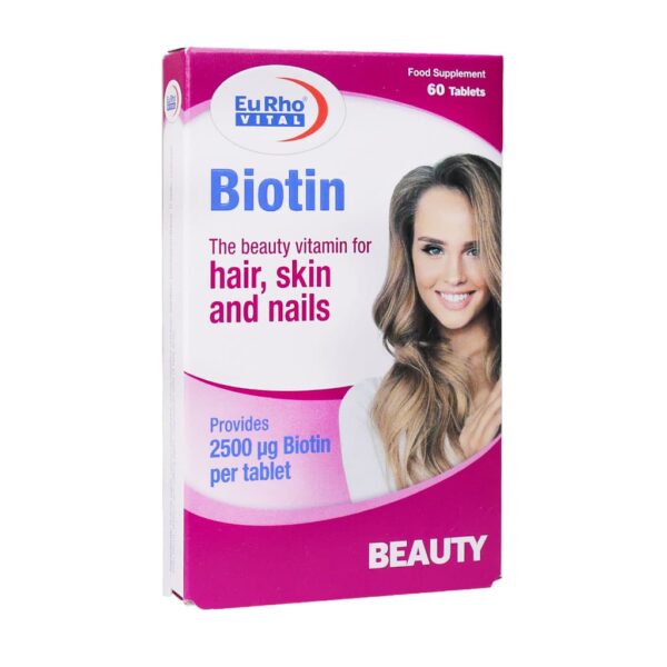 قرص بیوتین یوروویتال (EuroVital Biotin) یک مکمل غذایی است که به‌ویژه برای تقویت سلامت پوست، مو و ناخن طراحی شده است. این محصول حاوی ۲۵۰۰ میکروگرم بیوتین (ویتامین B7) در هر قرص می‌باشد.