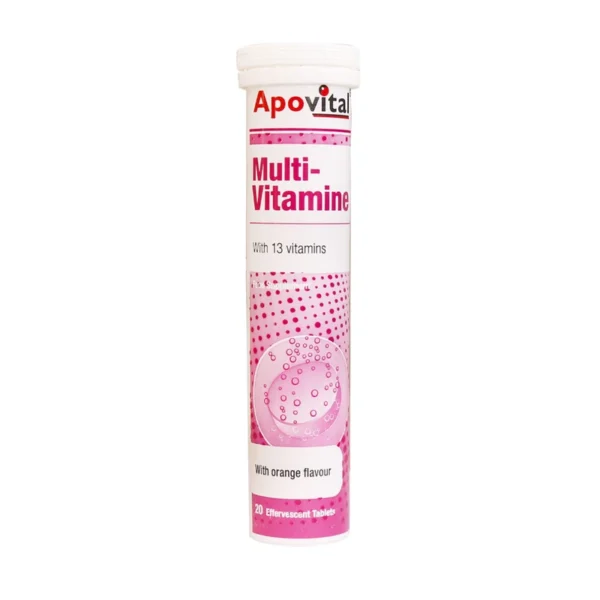 قرص جوشان مولتی ویتامین آپوویتال (Apovital Multivitamin Effervescent Tablets) یک مکمل غذایی با طعم پرتقال است که حاوی ۱۳ ویتامین ضروری برای تقویت سیستم ایمنی، حفظ سلامت عمومی بدن و افزایش انرژی روزانه میباشد.
