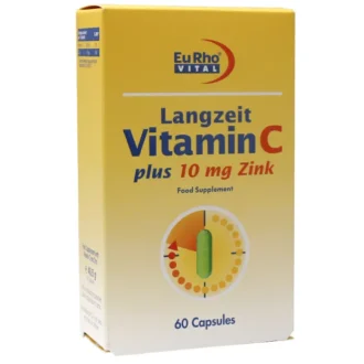 کپسول آهسته رهش ویتامین C + روی یوروویتال (Eurho Vital Langzeit Vitamin C Plus Zink) یک مکمل غذایی است که