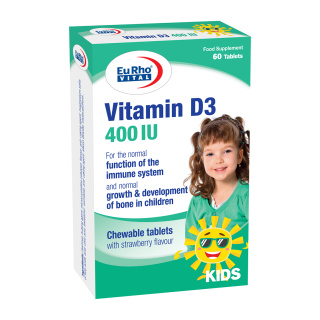 قرص جویدنی ویتامین D3 400 یوروویتال (Eurho Vital Vitamin D3 400 IU) یک مکمل غذایی مناسب برای کودکان بالای ۴