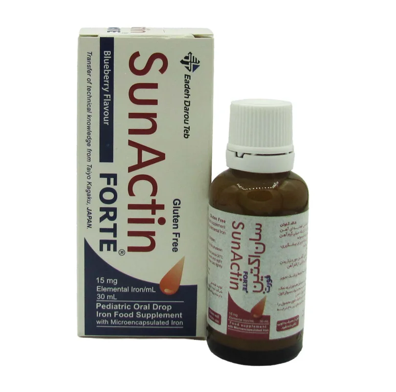 قطره «سان اکتین فورت» (Sun Actin Forte) یک مکمل غذایی ایرانی است که برای تأمین آهن مورد نیاز روزانه در نوزادان و کودکان طراحی شده است. این محصول بهویژه برای پیشگیری و درمان کمخونی ناشی از فقر آهن مناسب است.