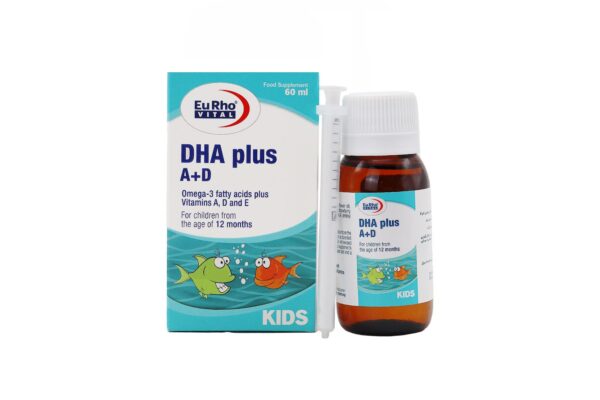قطره DHA پلاس A+D یوروویتال (Eurho Vital DHA Plus A+D) یک مکمل غذایی ویژه کودکان است که ترکیبی از اسیدهای چرب امگا-۳ (DHA و EPA) و ویتامینهای A، D و E را برای تقویت رشد مغزی، بینایی، سیستم ایمنی و سلامت عمومی بدن ارائه میدهد.