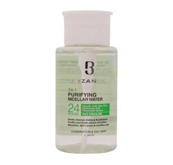 • نام محصول: محلول پاک‌کننده آرایش و آبرسان بیزانس مخصوص پوست چرب و مختلط