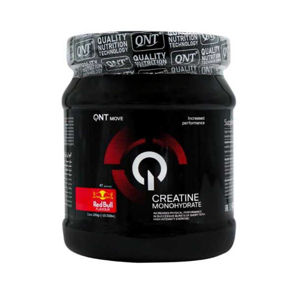 مکمل پودر کراتین مونوهیدرات برند QNT با طعم ردبول و وزن ۲۵۰ گرم یک مکمل محبوب در بین ورزشکاران است که برای افزایش قدرت، استقامت و حجم عضلات طراحی شده است.