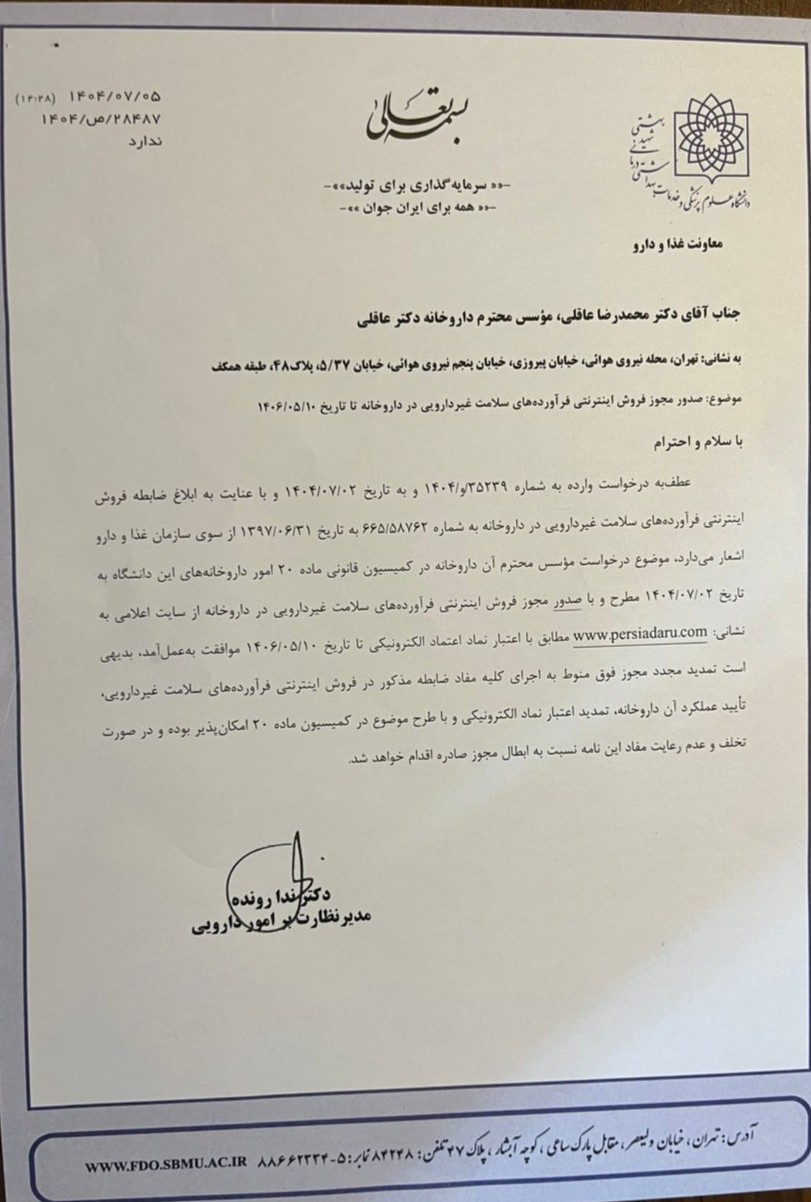 با پرشیادارو، سلامتی همیشه در دسترس شماست.