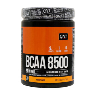 مکمل پودر BCAA 8500 برند QNT با طعم پرتقال و وزن ۳۵۰ گرم یک مکمل محبوب در بین ورزشکاران است